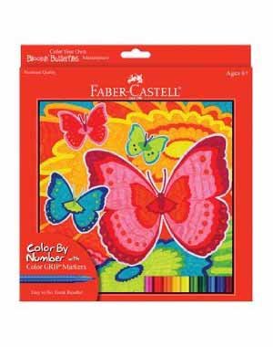 Kids will love to color these beautiful Bloomin' Butterflies artwork and hang it on their wall. This guided art activity will appeal to kids who are interested in art and want to create a "masterpiece". The numbered color guides are printed separately from the canvases to allow young artists to follow the guide or to color their picture their own creative way. This art kit includes Faber-Castell Color GRIP markers, an illustration board, a numbered color guide, a foam mounting board and mounting tape.