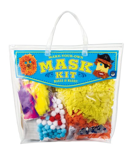 This magical kit turns kids into lions, pirates, princesses or anything else their imaginations can create. Includes ten sturdy mask forms with elastic cords, double-stick tape, pompoms, jewels and fringed paper, plus ready-to-decorate cutouts of hats, glasses, funny lips and more.