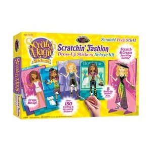 • Includes over 150 Scratching Fashion dress-up stickers, 8 dress-up models in picture scenes, 8 picture stand sets, 1 medium point wood drawing stylus, and instructions for hours of creative fun