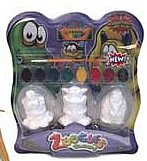 Paint Your Own Zoogles You don't know from Zoogles"? Then go google Zoogles. You'll see cute little guys from the Crayola® people, with very high rugrat appeal. These versions are in unpainted plaster and come with watercolor paints, an artist's brush, and collector cards. Zoogle Buddies 2 is a pair, both 2-5/8" tall, with (5) paint colors. The Zoogle Clump 5 contains (3) of the zoogly creatures, 2-5/8" tall, and (8) paint colors.,You don't know from Zoogles"? Then go google Zoogles. You'll see cute little guys from the Crayola® people, with very high rugrat appeal. The Zoogle Clump 5 contains (3) of the unpainted plaster zoogly creatures, 2-5/8" tall, and comes with (8) watercolor paints, an artist's brush, and collector cards.