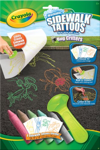Crayola Sidewalk Tattoos - Bug Critters lets you enhance your outdoor art with ready-made line-art images. Rub on any flat outdoor surface and color in with Sidewalk Crayons or other Crayola Outdoor products. Includes 4 sidewalk tattoos.From its earliest beginnings, Crayola has been a color They came into being when cousins Edwin Binney and C. Harold Smith took over Edwin's father's pigment business in 1885. More than 120 years later, color - along with creativity, learning and most of all, fun - is the hallmark of the Crayola company.