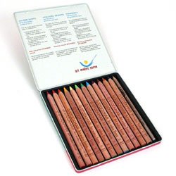 Pencils have 3.3 mm, smooth cores for vivid, blendable color laydown. They are manufactured using only the finest materials. Color names are prominently printed on each pencil for easy reference. Pencils are cased in real wood and pre-sharpened.
